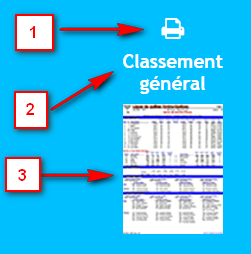 Dans la section Statitstiques, chaque rapport est surmonté d'une petite imprimante. Un clic sur cette icône (1) ouvrira le rapport au format pdf dans un autre onglet. Pour imprimer, cliquer sur l'icône "Imprimer" qui est visible en haut à droite de l'onglet où s'affiche le rapport.